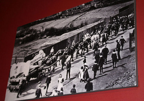 Interesting photograph of the effort needed to transport the anchor.