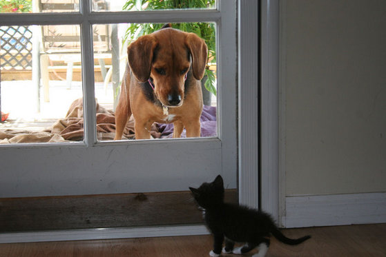 Snickers (Sandy and Bob's dog) and a new foster baby (April 2008) named Lucky.