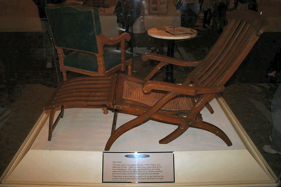 This deck chair is an original from the Titanic. It was found by a cable ship hired by White Star line after the wreck.